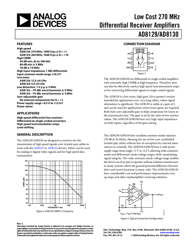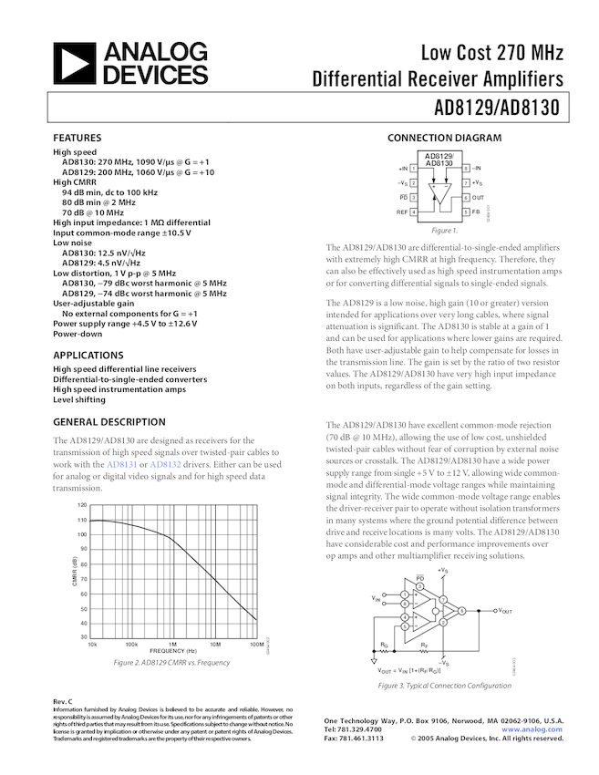 AD8130: Low Cost 270 MHz Differential Receiver Amplifier