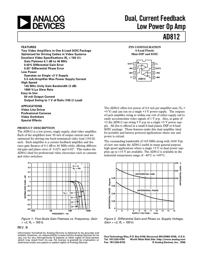 Dual, Current Feedback Low Power Op Amp
