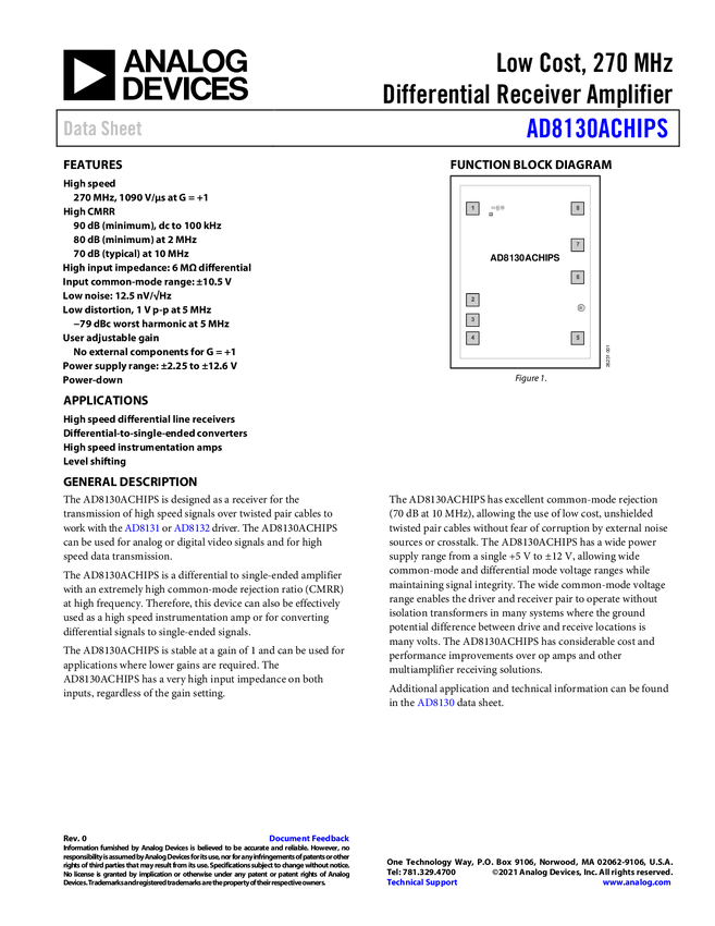 AD8130: Low Cost 270 MHz Differential Receiver Amplifier