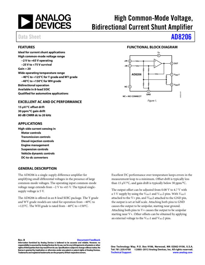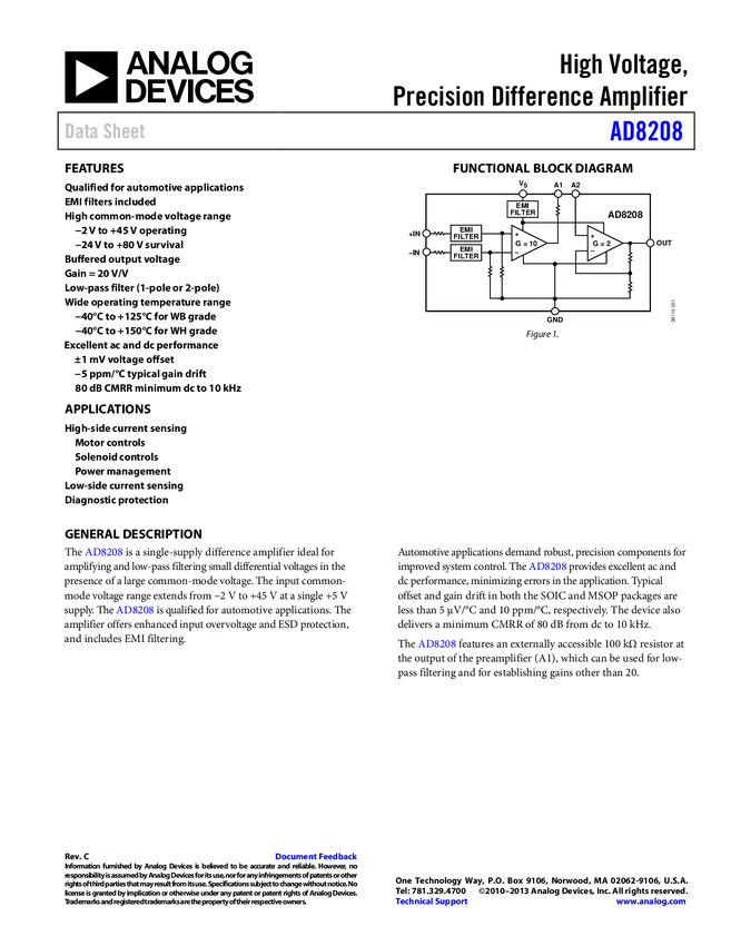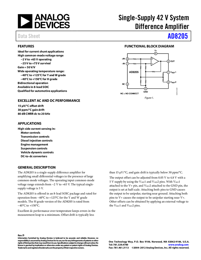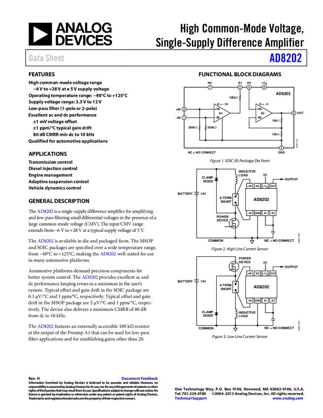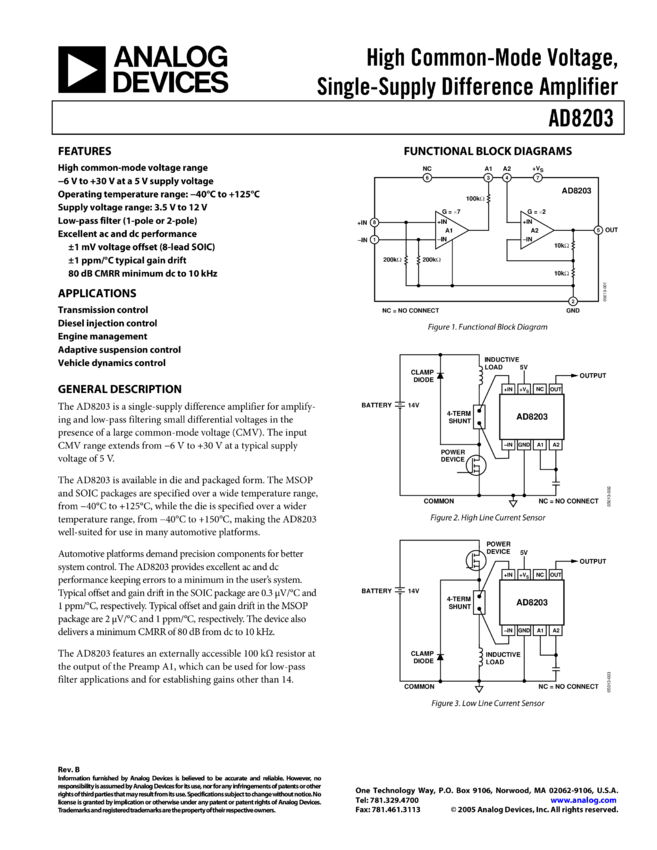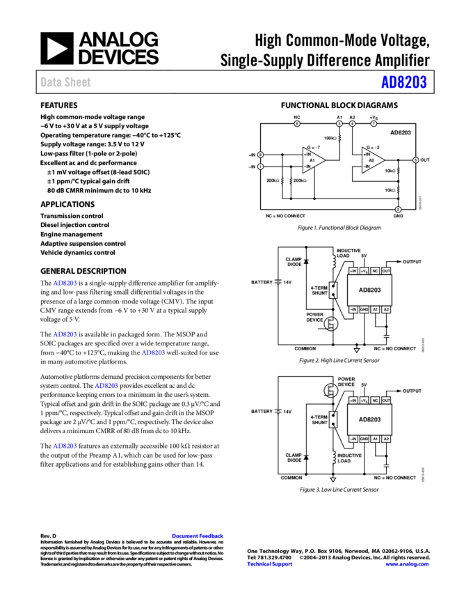AD8203: High Common-Mode Voltage, Single-Supply Difference Amplifier
