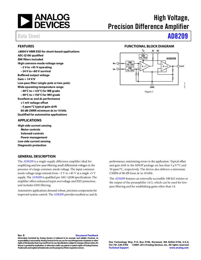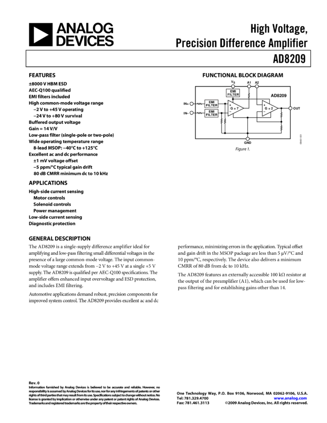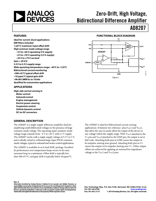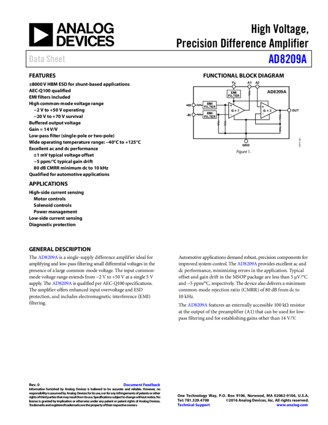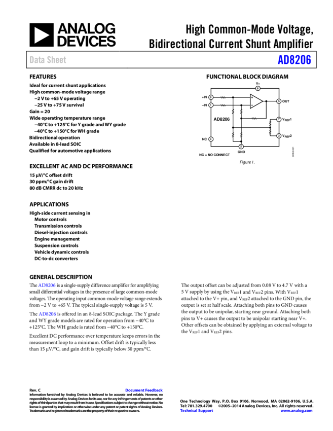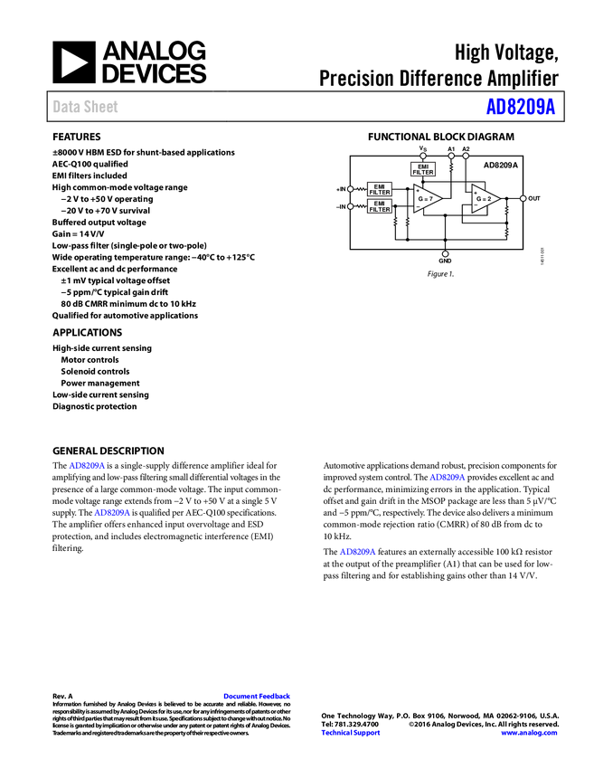 AD8203: High Common-Mode Voltage, Single-Supply Difference Amplifier