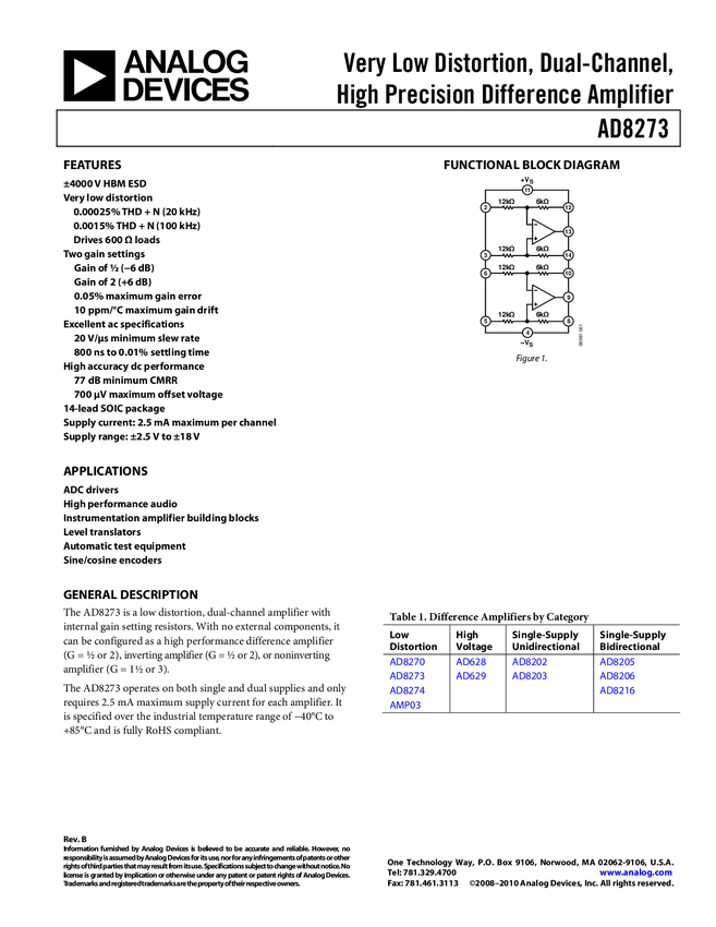 Very Low Distortion, Dual-Channel, Audio Difference Amplifier