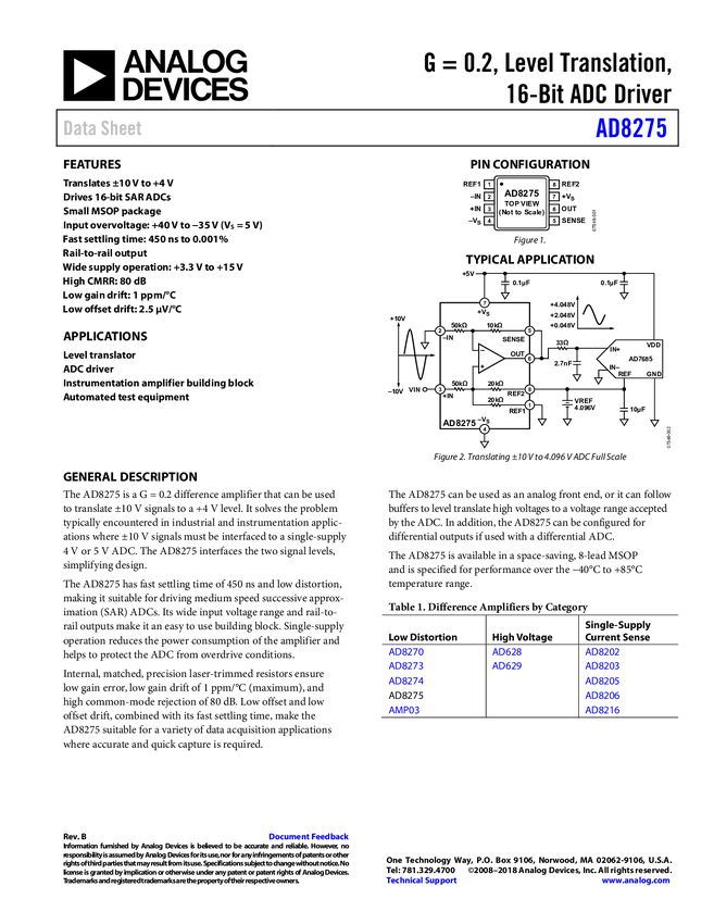 G = 0.2, Level Translation, 16-Bit ADC Driver