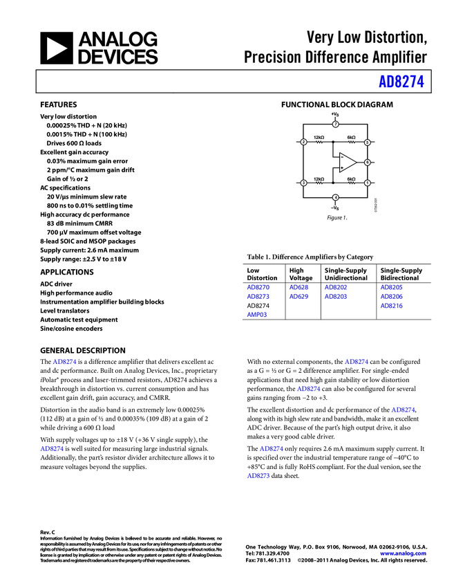 Very Low Distortion, Precision Difference Amplifier