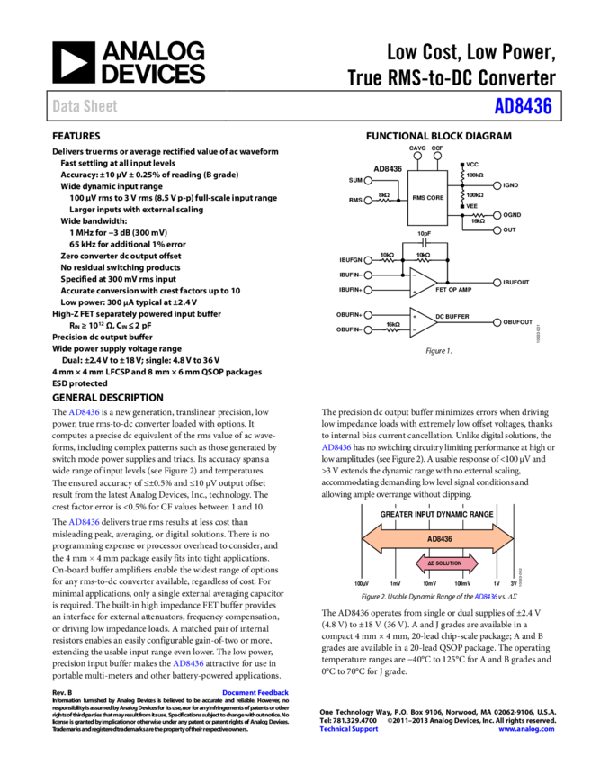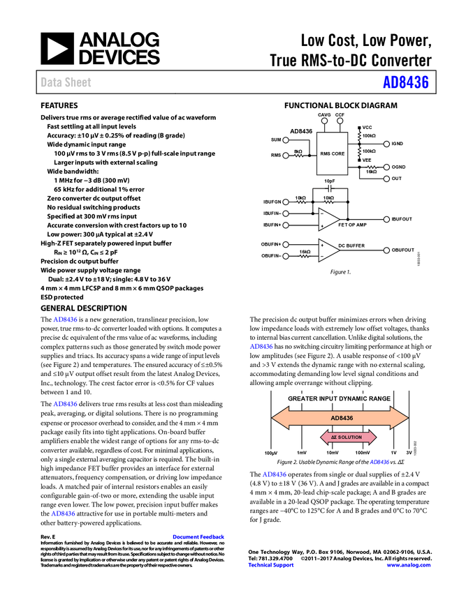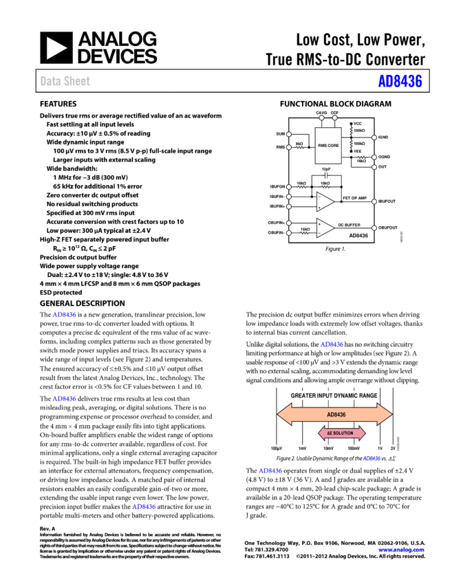 AD8436: Low Cost, Low Power, True RMS-to-DC Converter