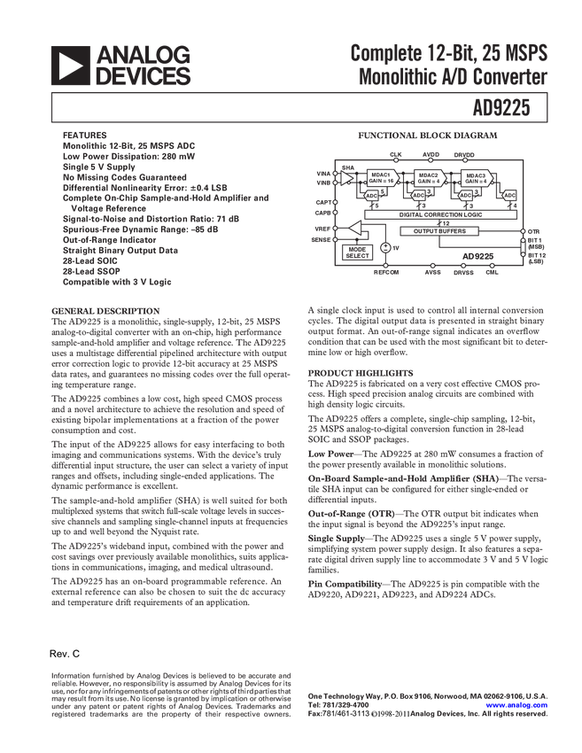 12-Bit , 25 MSPS Monolithic A/D Converter