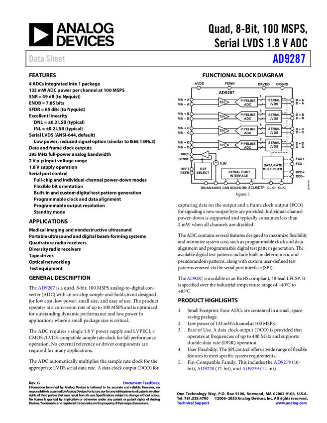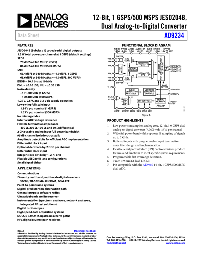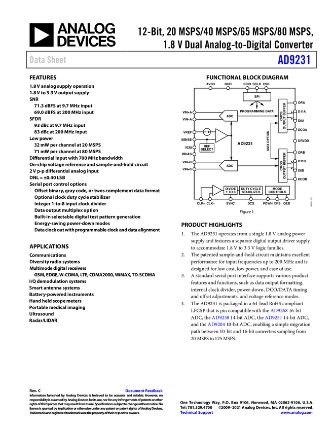 AD9233: 12-Bit, 80 MSPS/105 MSPS/125 MSPS, 1.8 V Analog-to-Digital Converter