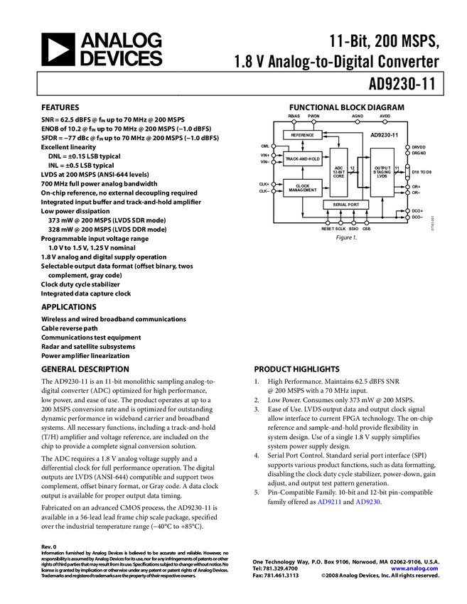 11-Bit, 200 MSPS, 1.8 V Analog-to-Digital Converter
