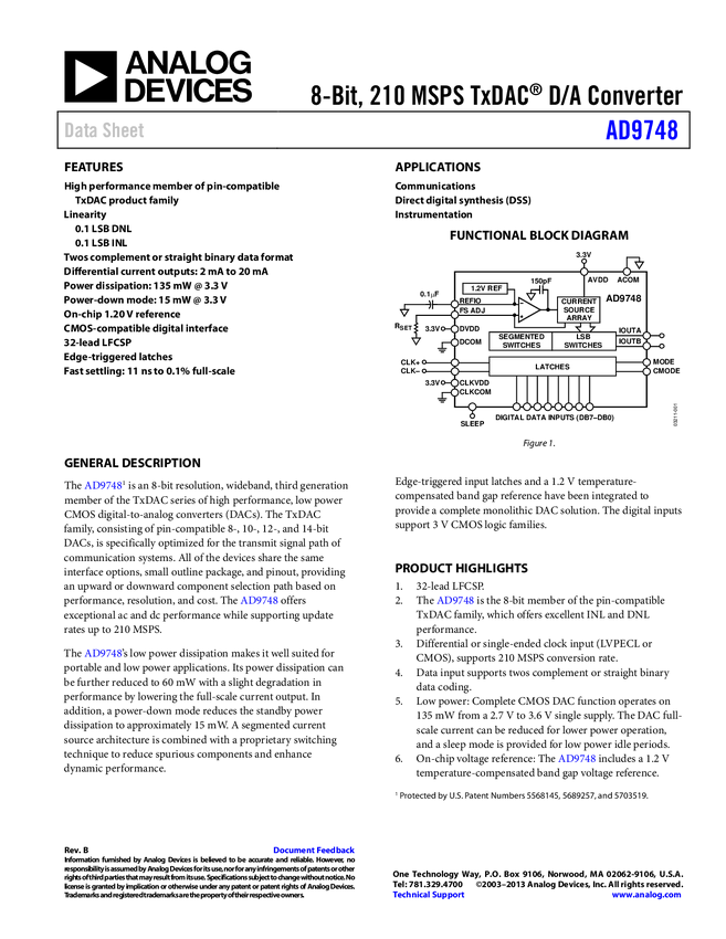 AD9748: 8-Bit, 210 MSPS D/A Converter