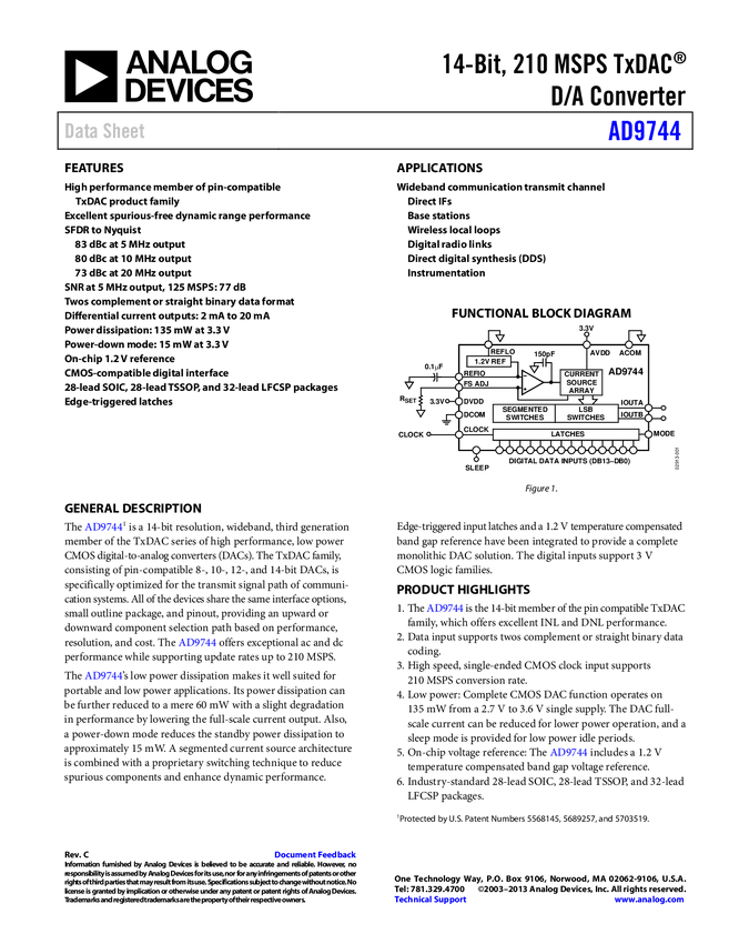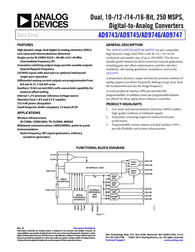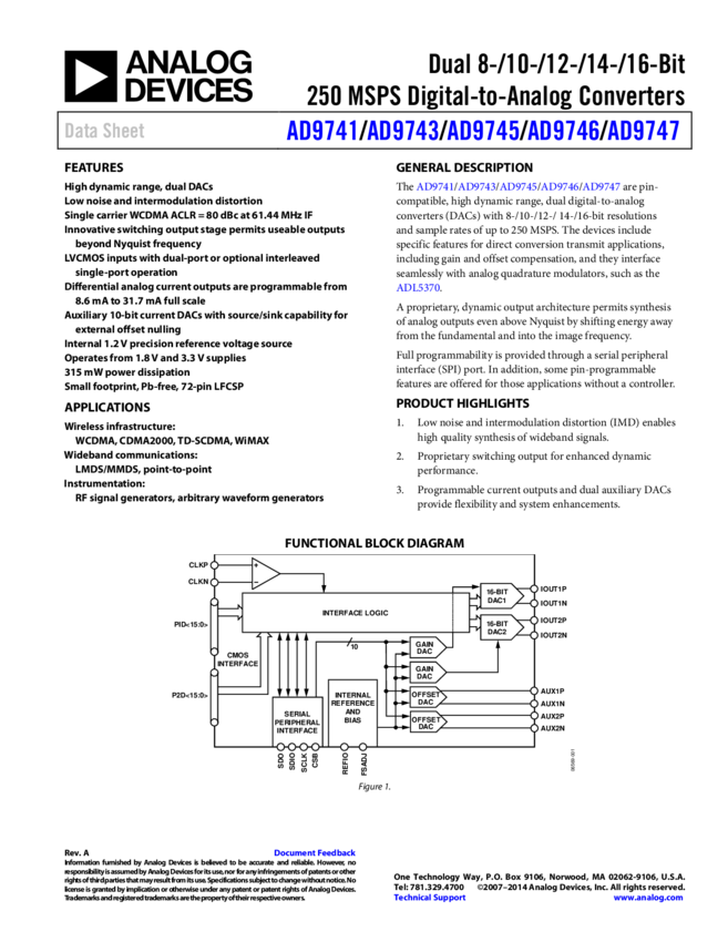 AD9746: Dual 14-Bit 250 MSPS Digital-to-Analog Converters
