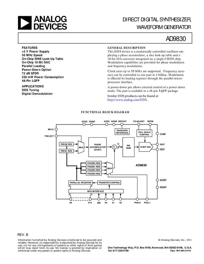 AD9832: 25 MH Direct Digital Synthesizer Waveform Generator