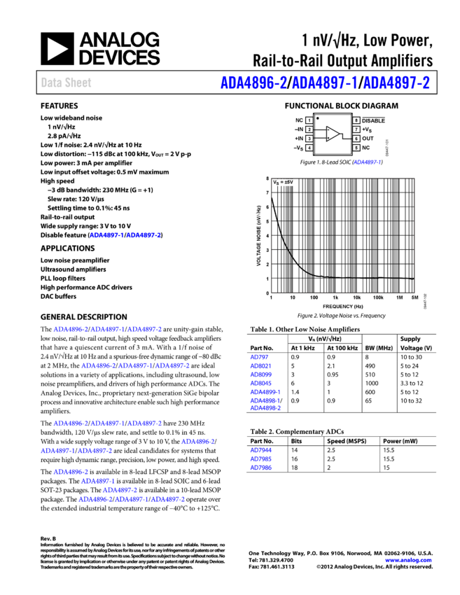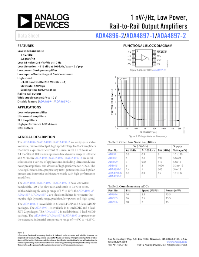 ADA4897-1: 1 V/√Hz, Low Power, Rail-to-Rail Output Amplifiers