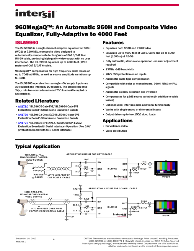 960MegaQ™: An Automatic 960H and Composite Video Equalizer, Fully-Adaptive to 4000 Feet