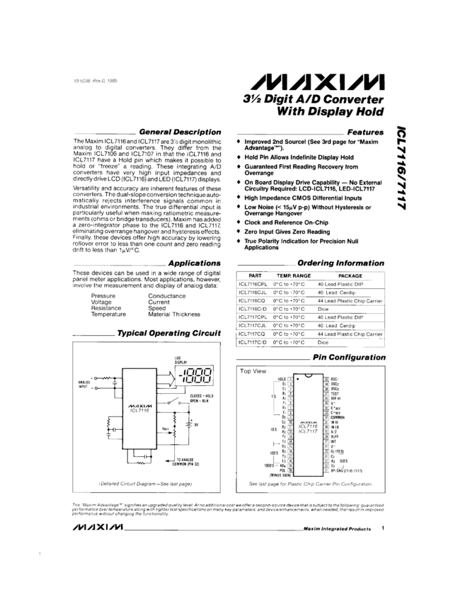 ICL7129A, MAX7129 Low-Noise, 4 1/2 Digit, Single-Chip ADC with Multiplexed LCD Drivers
