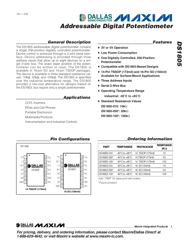 DS1805 Addressable Digital Potentiometer