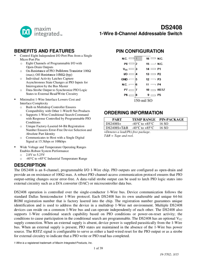 DS2408 1-Wire 8-Channel Addressable Switch