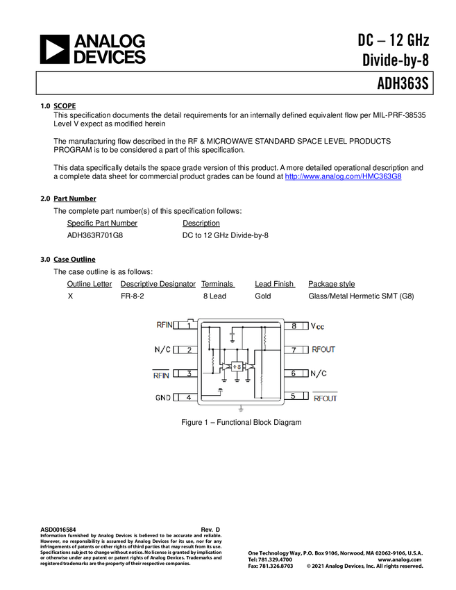 Aerospace 0.1 GHz to 40 GHz, GaAs, MMIC, 5-Bit 1.0 dB LSB, Digital Attenuator