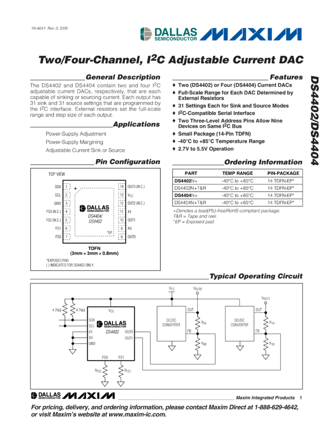 DS4402, DS4404 Two/Four-Channel, I²C Adjustable Current DAC