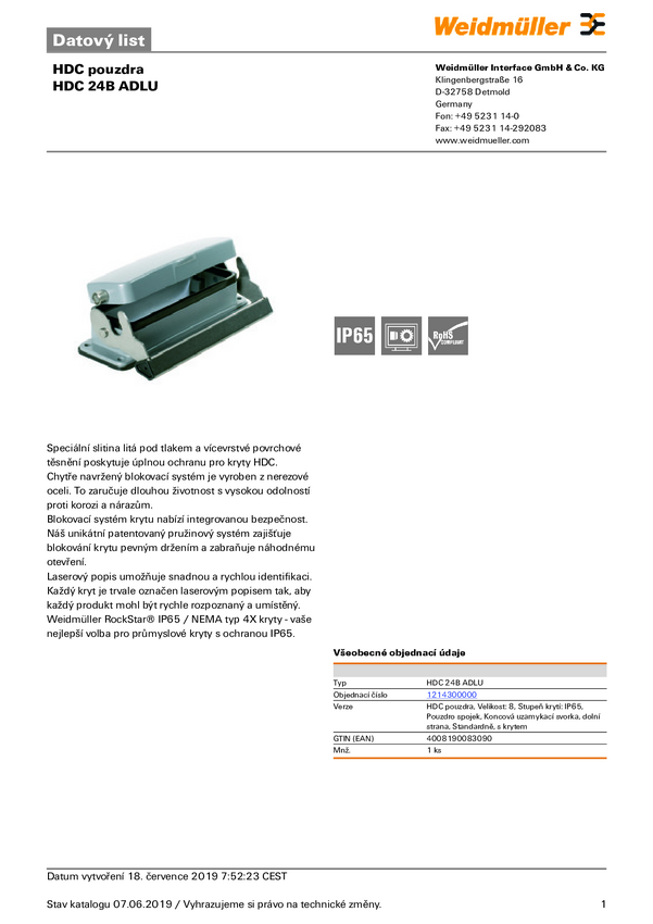 Weidmüller HDC 24B ADLU 1214300000 Obudowa montażowa 1 szt.