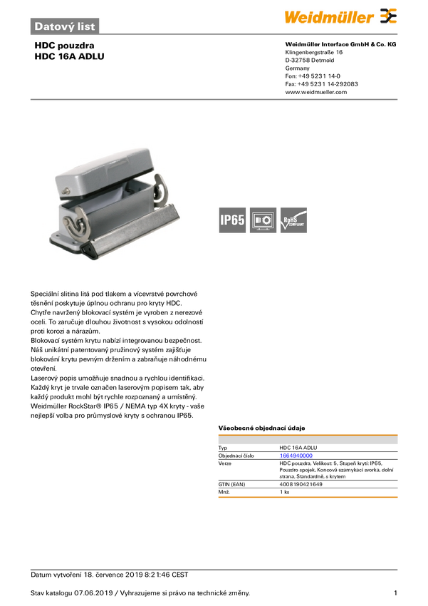 Weidmüller HDC 16A ADLU 1664940000 Obudowa montażowa 1 szt.