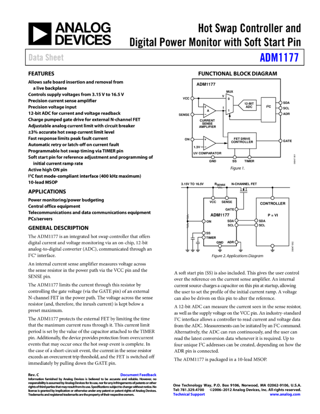 ADM1177: Hot Swap Controller and Digital Power Monitor with Soft Start Pin