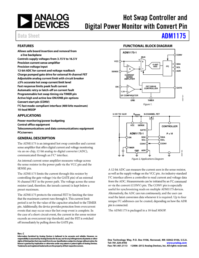 ADM1175: Hot Swap Controller and Digital Power Monitor with Convert Pin