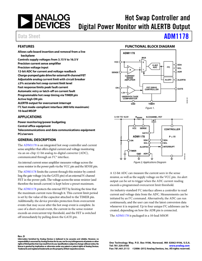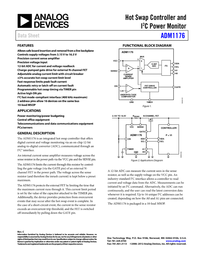 ADM1176: Hot Swap Controller and IC® Power Monitor