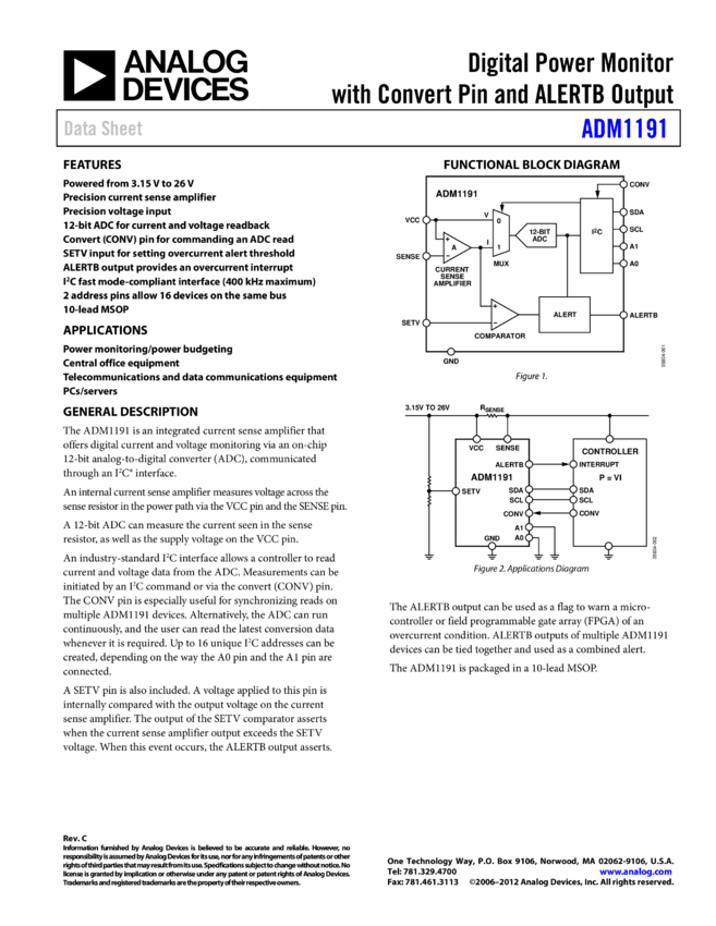 ADM1191: Digital Power Monitor with Convert Pin and ALERTB Output