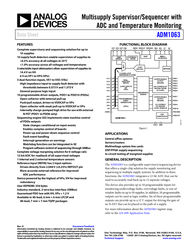 ADM1063: Multisupply Supervisor/Sequencer with ADC and Temperature Monitoring
