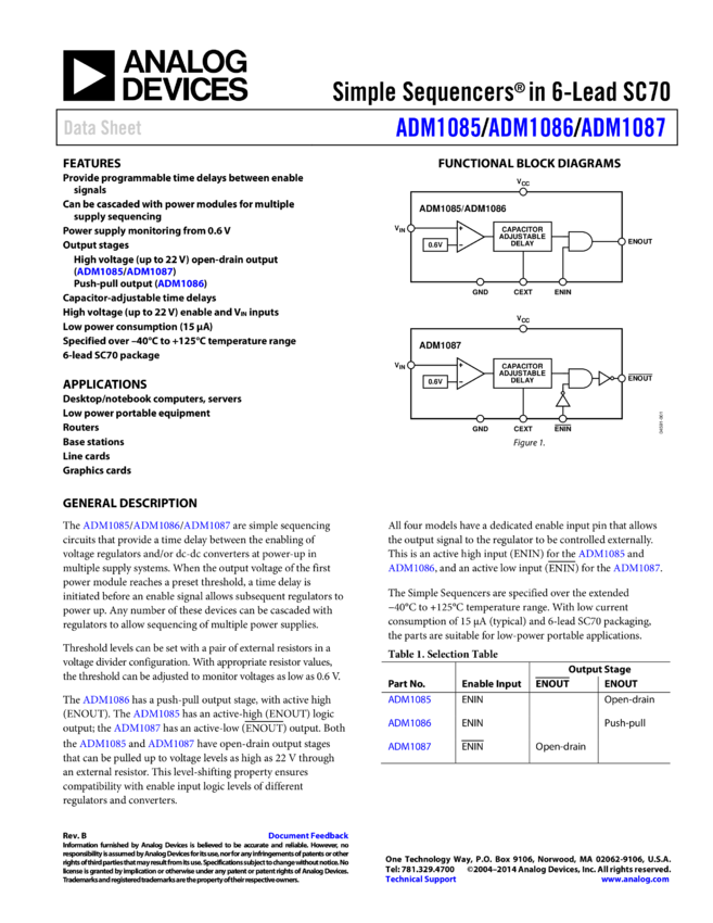 ADM1087: Voltage Sequencer with Active Low, Open-Drain Enable Output