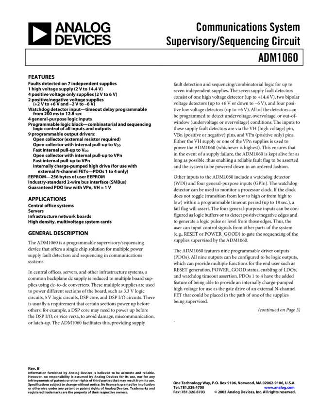 ADM1060: Multi Power Supply Sequencer & Supervisor