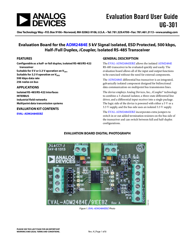 ADM2484E: 5 kV Signal Isolated, ESD Protected, 500 kbps, Full/Half Duplex RS-485 Transceiver