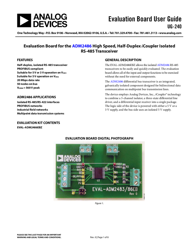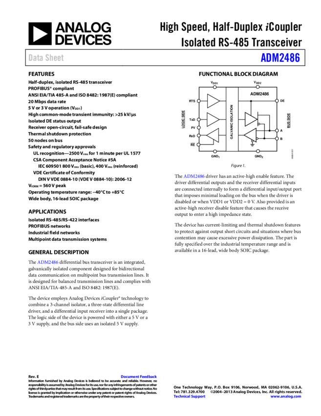 ADM2486: 2.5 kV Signal Isolated, High Speed (20 Mbps), Half Duplex RS-485 Transceiver