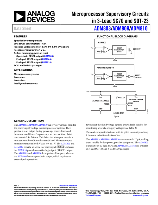 ADM810: Microprocessor Supervisory Circuit in 3-Lead SOT-23 & SC70, Active-High Push-Pull Output