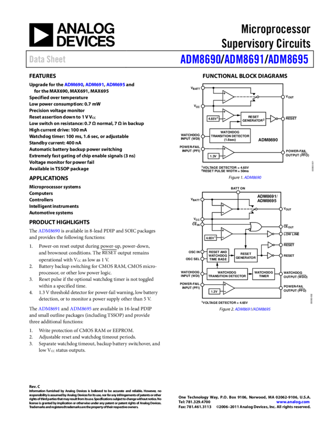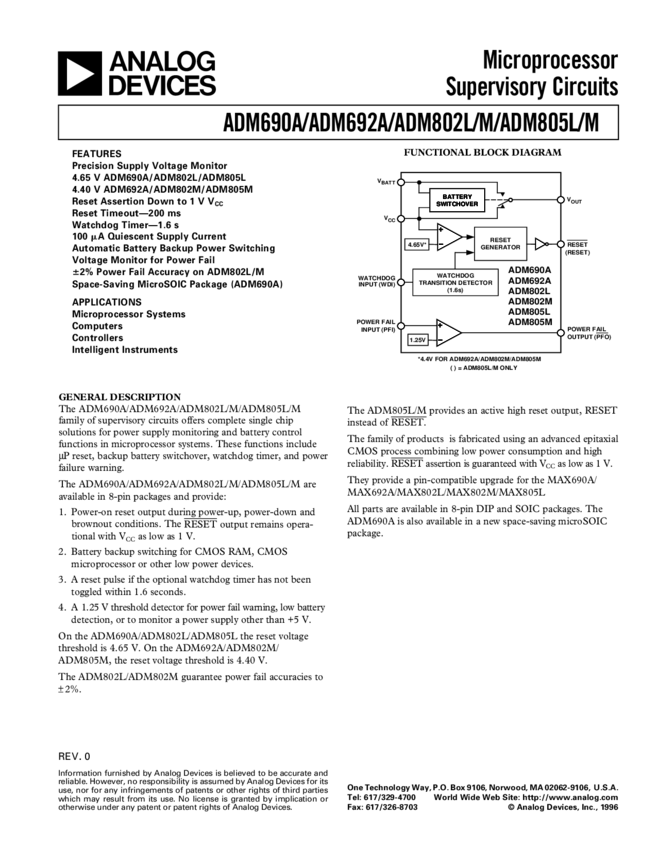 Microprocessor Supervisor with Chip Enable Signals, Adjustable Low Line Voltage Monitor, Adjustable Watchdog Timer, Low Line, Power Fail and Watchdog Status Outputs, Reduced Power Consumption. Upgrade for ADM697
