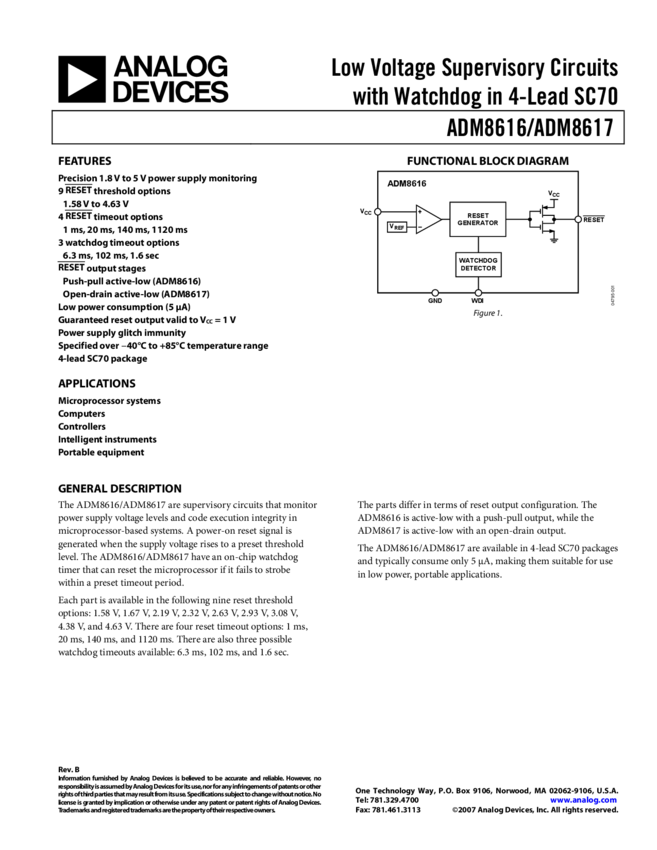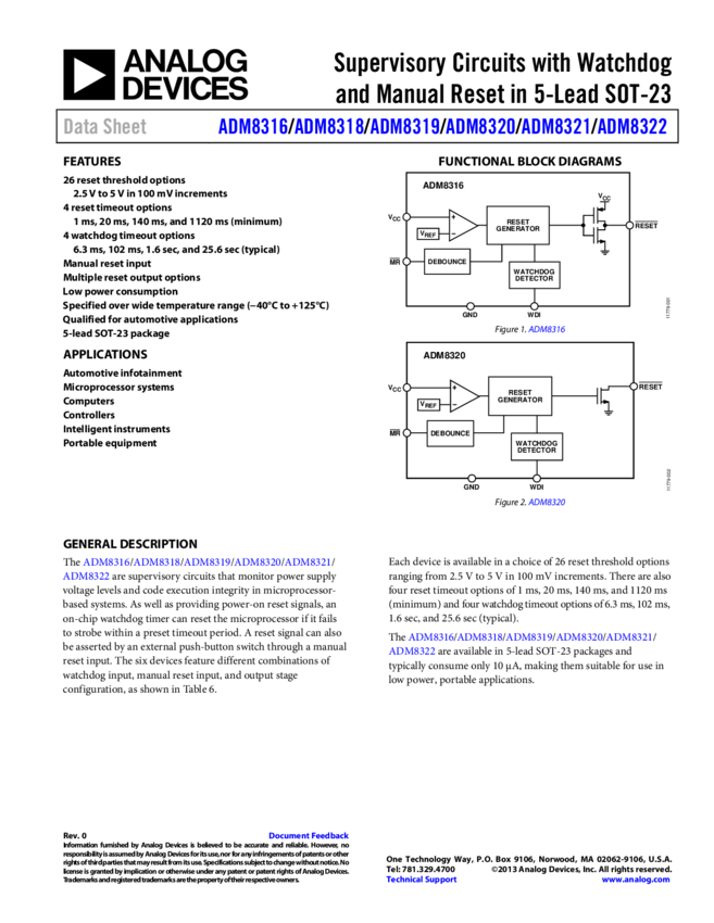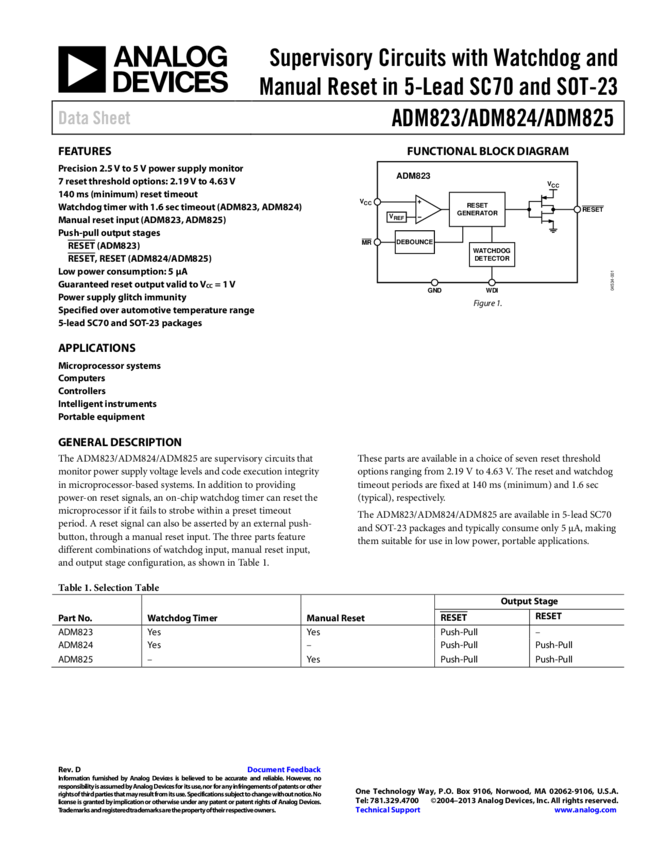 ADM824: Supervisory Circuits with Watchdog and Manual Reset in 5-Lead SC70 and SOT-23