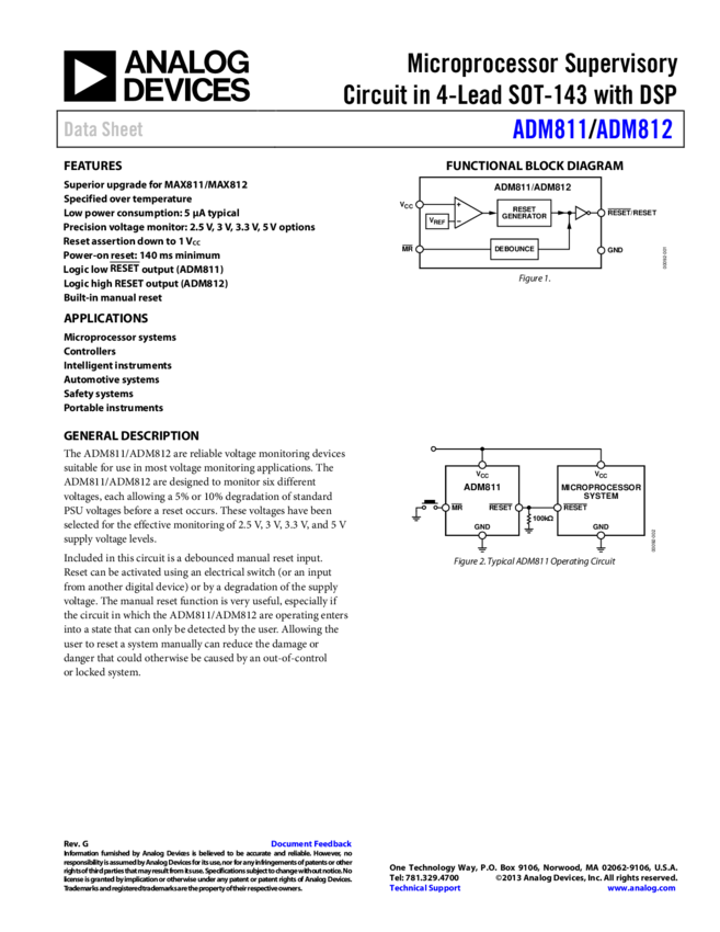 ADM812: Microprocessors Supervisory Circuit in 4-Lead SOT-143, Logic High RESET Output