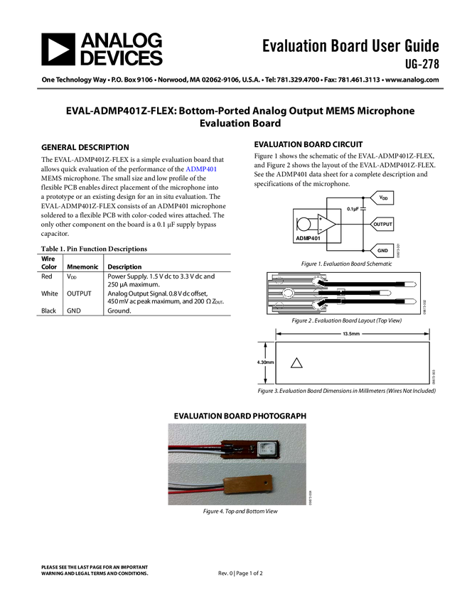 ADMP401: Omnidirectional Microphone with Bottom Port and Analog Output
