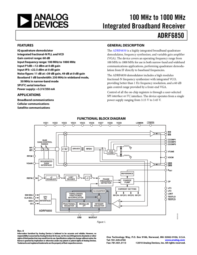 ADRF6850: 100 Integrated Broadband Receiver