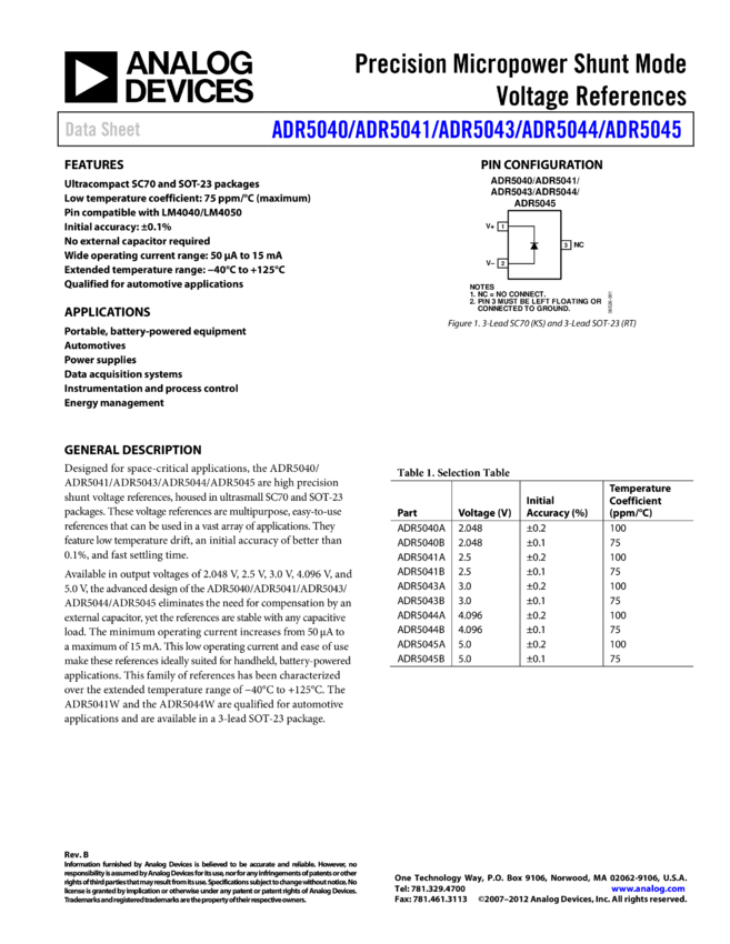 ADR5045: Precision Micropower Shunt Mode Voltage Reference Applications (5.0 V)