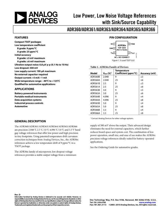 ADR366: Low Power, Low Noise Voltage Reference with Sink/Source Capability, 3.3 V