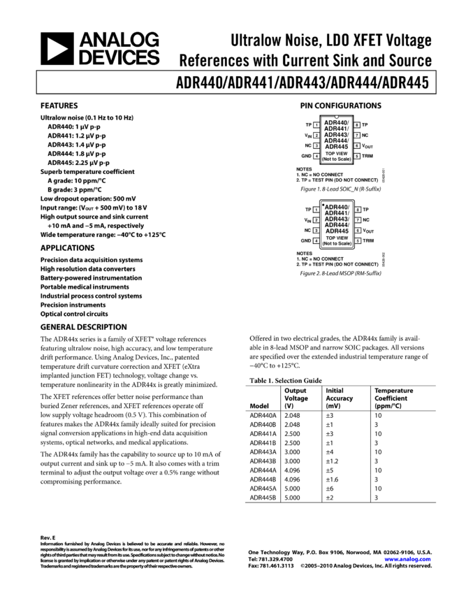 ADR445: Ultralow Noise, LDO XFET® 5.0V Voltage Reference /Current Sink and Source