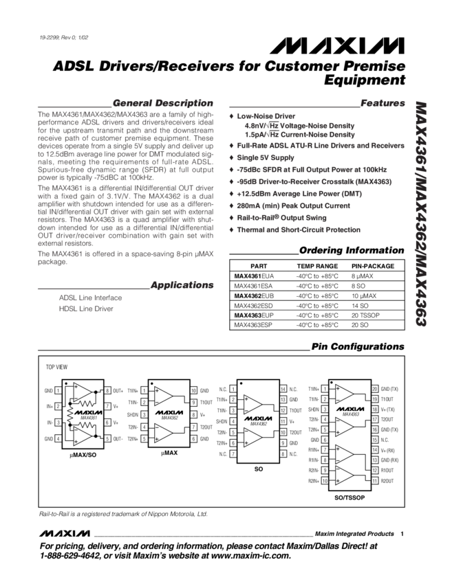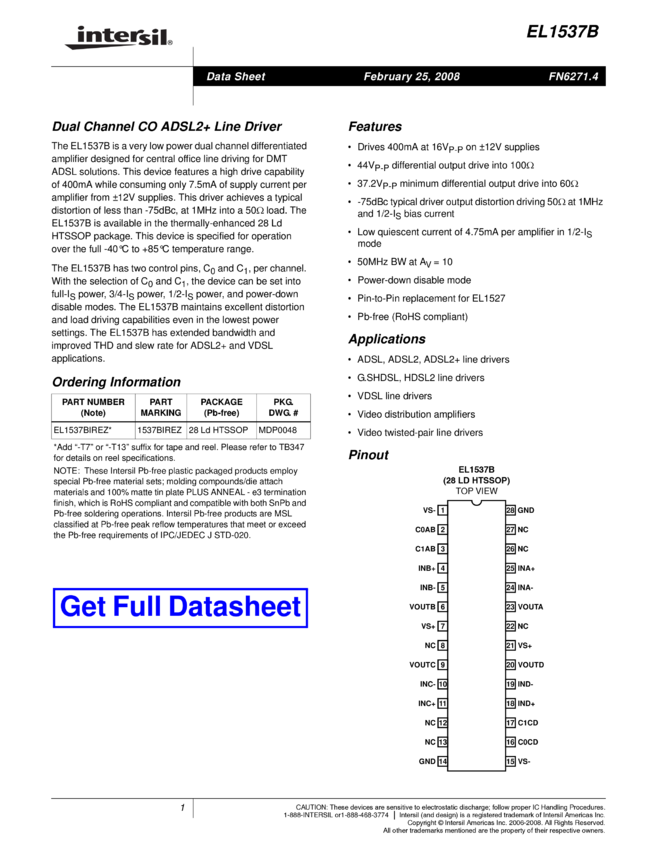 ADSL Driver Dual 14-Pin HTSSOP EP T/R