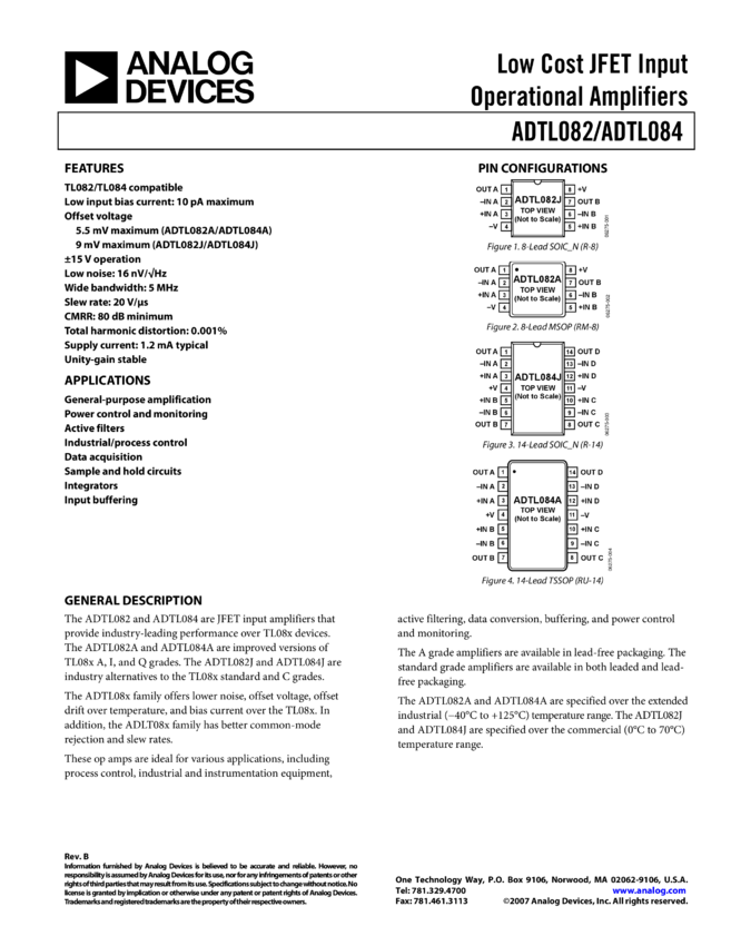 ADTL084: Low Cost JFET Input Operational Amplifier