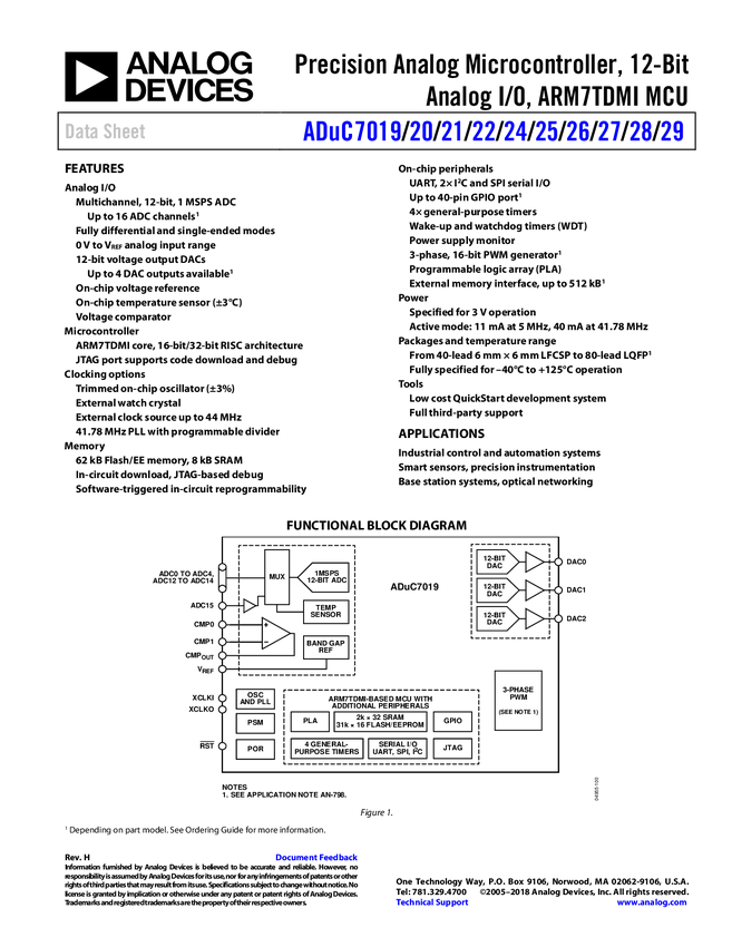 Precision Analog Microcontroller, 12-Bit Analog I/O, ARM7TDMI MCU