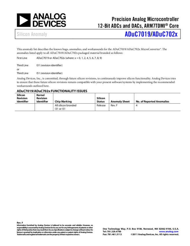 ADUC7029: Precision Analog Microcontroller, 12-Bit Analog I/O, ARM7TDMI MCU