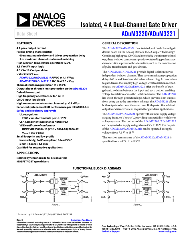 ADUM3221: Isolated 4 A Dual-Channel Gate Driver