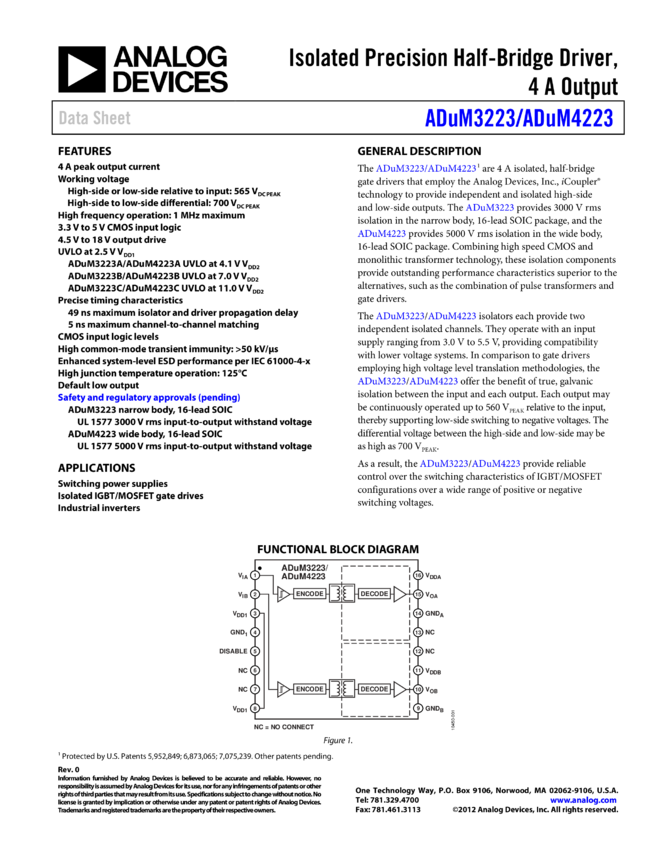 ADUM4223: 5 KV rms Isolated Precision Half-Bridge Driver, 4 A Output