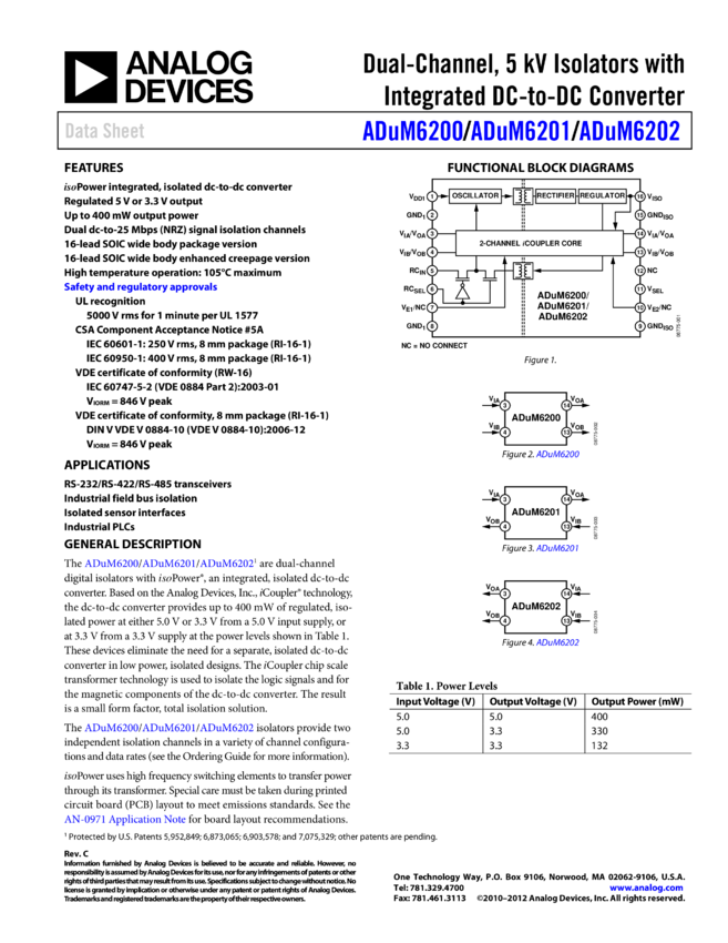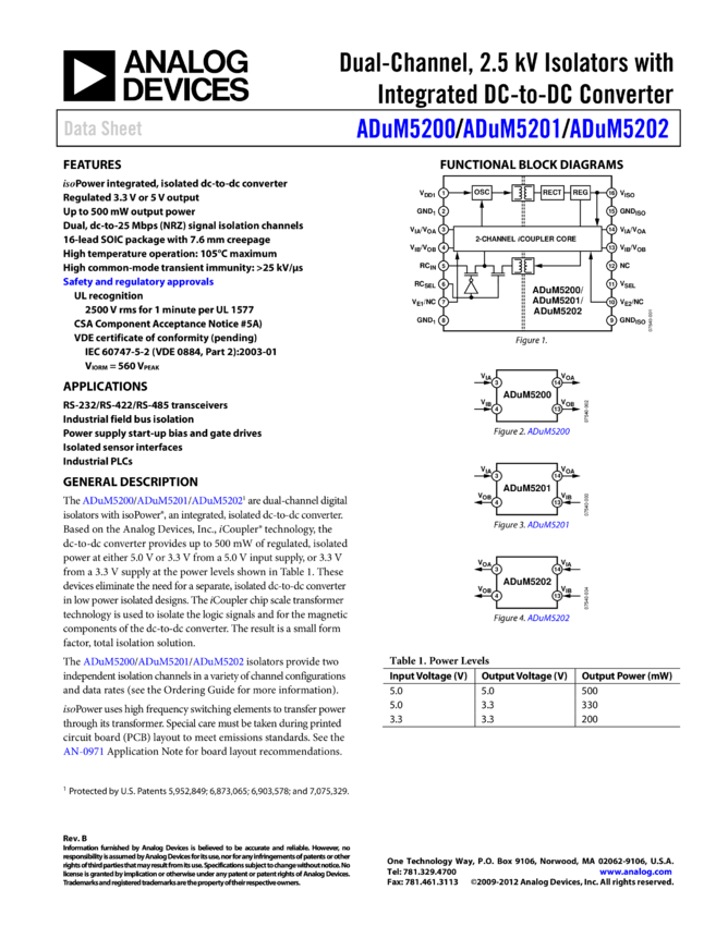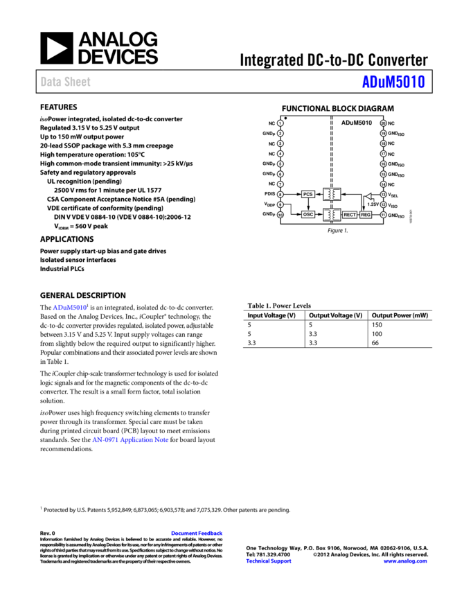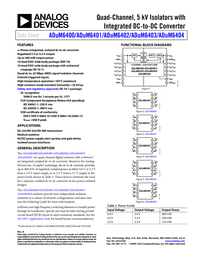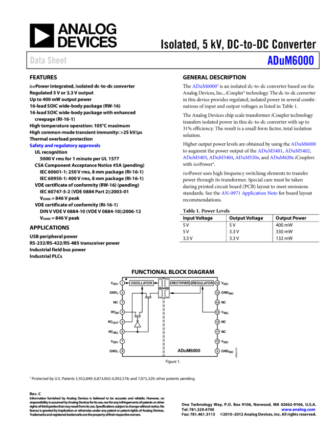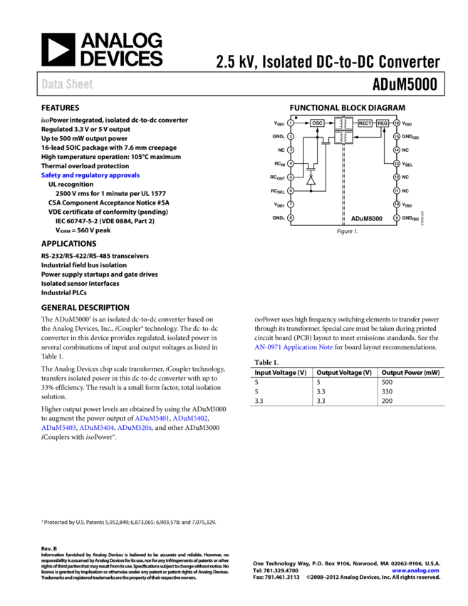 ADUM6000: Isolated, 5 V, DC/DC Converter