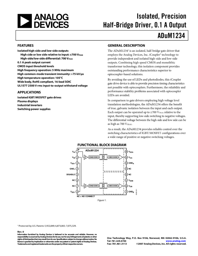 ADUM1234: Isolated, Precision Half-Bridge Driver, 0.1 A Output